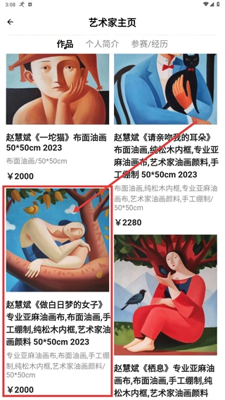2、在艺术家主页找到目标作品(例如《做白日梦的女子》),点击进入该作品的详情页面。