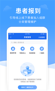 患者报到、复诊提醒、诊后随访、健康宣教等服务;医生可对咨询过的患者以及线下导入的患者进行标记、备注、分组,并通过诊后随访跟踪病情,构建专属的个人患者管理体系;在医患交流圈子里,分享专业健康科普知识,开展患者健康教育活动,助力医生个人品牌的塑造与提升。