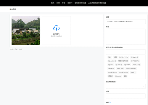 四、上传图片后,编辑好标题、描述等相关内容,最后点击发布按钮即可完成操作。