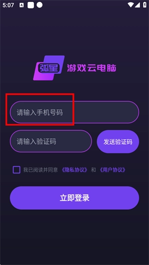进入登录界面后,输入手机号并接收验证码,即可直接完成登录操作。